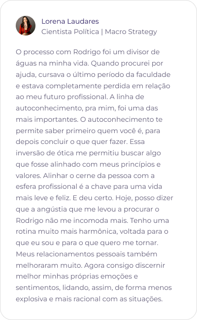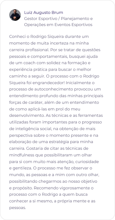 Rodrigo Siqueira é um professor e mentor inovador com uma metodologia científica que une autoconhecimento, ciência comportamental e tecnologia. Doutor pelo Instituto de Psicologia da UFRJ em Psicossociologia, com parte do doutorado realizado na Faculdade de Psicologia da Universidade da Califórnia, Berkeley, Rodrigo acredita que o verdadeiro desenvolvimento acontece quando propósito e ação se encontram.