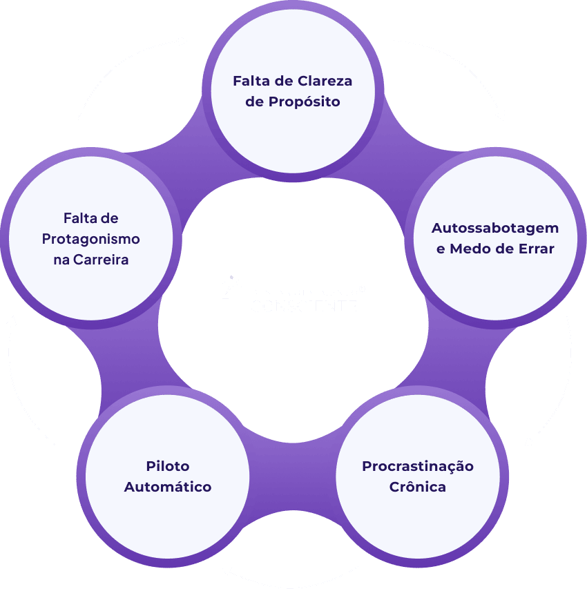 Todas essas barreiras drenam sua capacidade de assumir o controle do próprio caminho profissional. Você se torna espectador da própria trajetória.