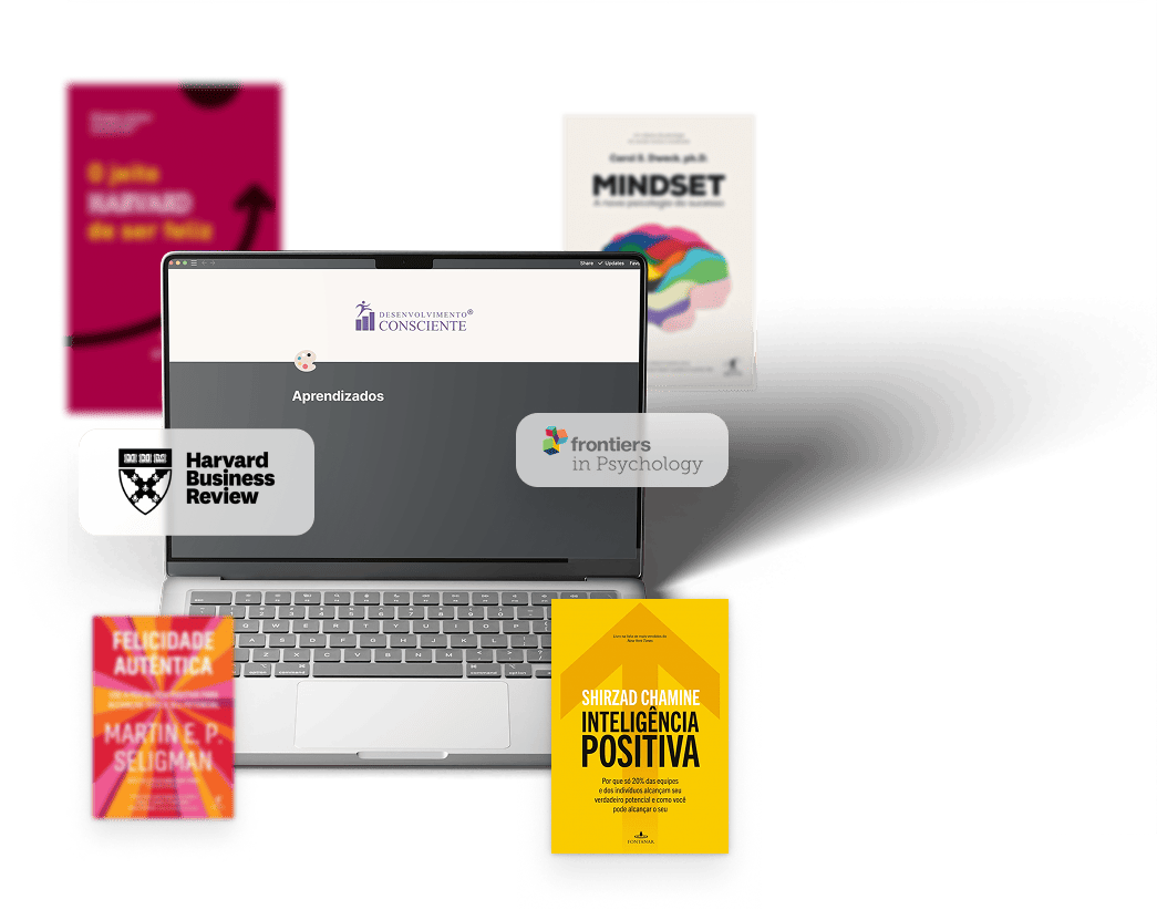 O Desenvolvimento Consciente® é um programa 100% digital, criado com base científica e nas melhores práticas de grandes empresas globais. Com uma abordagem prática e humanizada, ele oferece testes validados para autoconhecimento, conteúdos de fontes como Harvard Business Review e Fronteiras da Psicologia, além de ferramentas práticas para aplicar o aprendizado no dia a dia.